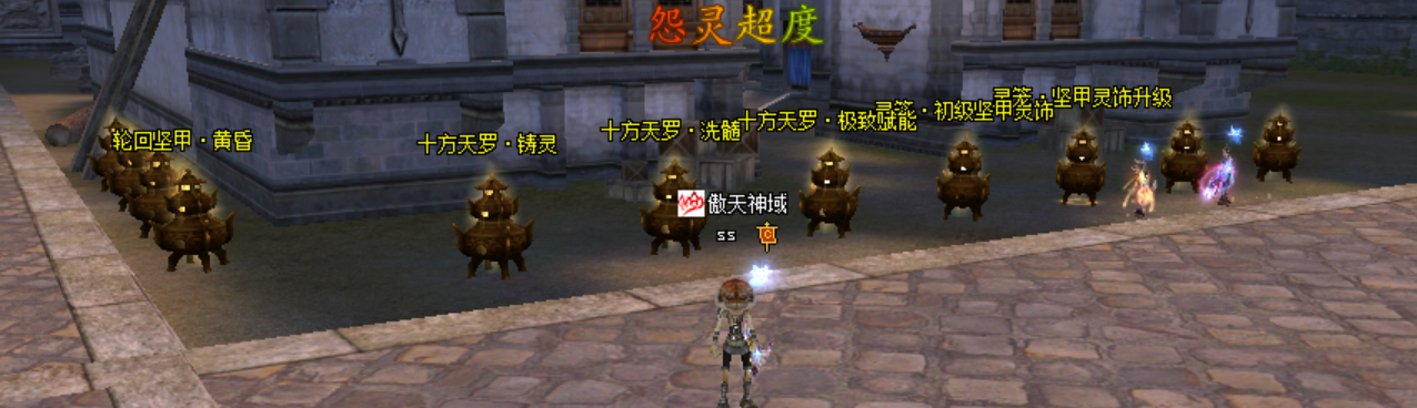 F11呼出古葉內(nèi)掛,CTRL+F12自動修煉,常用NPC都集中在城西十字路口。