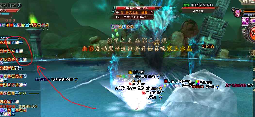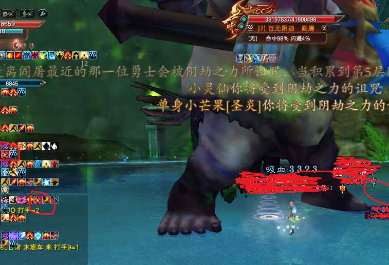 怪出現(xiàn)后,會(huì)隨機(jī)給隊(duì)伍8個(gè)人黑暗連線狀態(tài),(5.0攻擊狀態(tài))如圖我紅圈標(biāo)記所示。