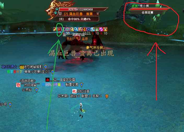 注意,這個(gè)怪,有夜影狀態(tài),所以8米外攻擊幾乎沒有傷害,如圖我紅圈標(biāo)示的深綠色圈圈。
