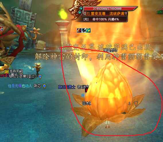 花挖慢了(BB群攻時(shí),雷電沒挖出來)的補(bǔ)救方法是,一定要把怪拉到雷電陣?yán)?,也能去除雙免狀態(tài)。