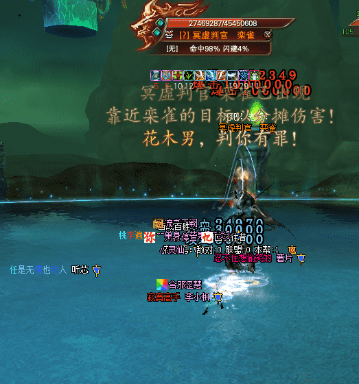 9關(guān)怪物會(huì)隨機(jī)選一個(gè)人追著打,被選中的人頭頂有小紅球,同時(shí)怪物仇恨也顯示被選中之人。