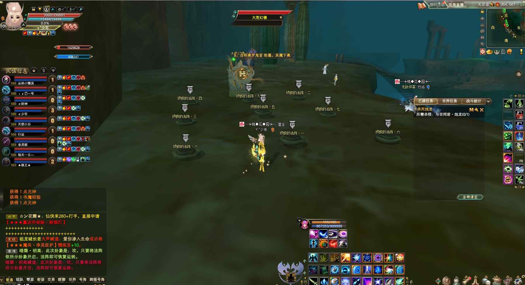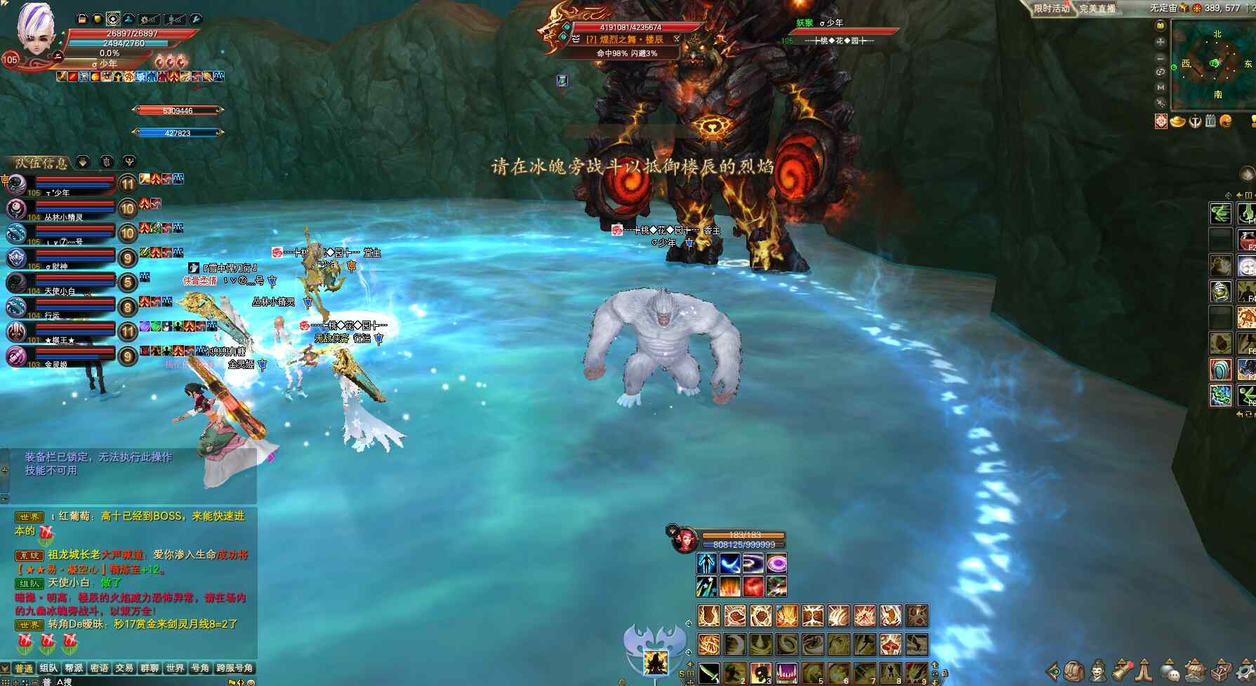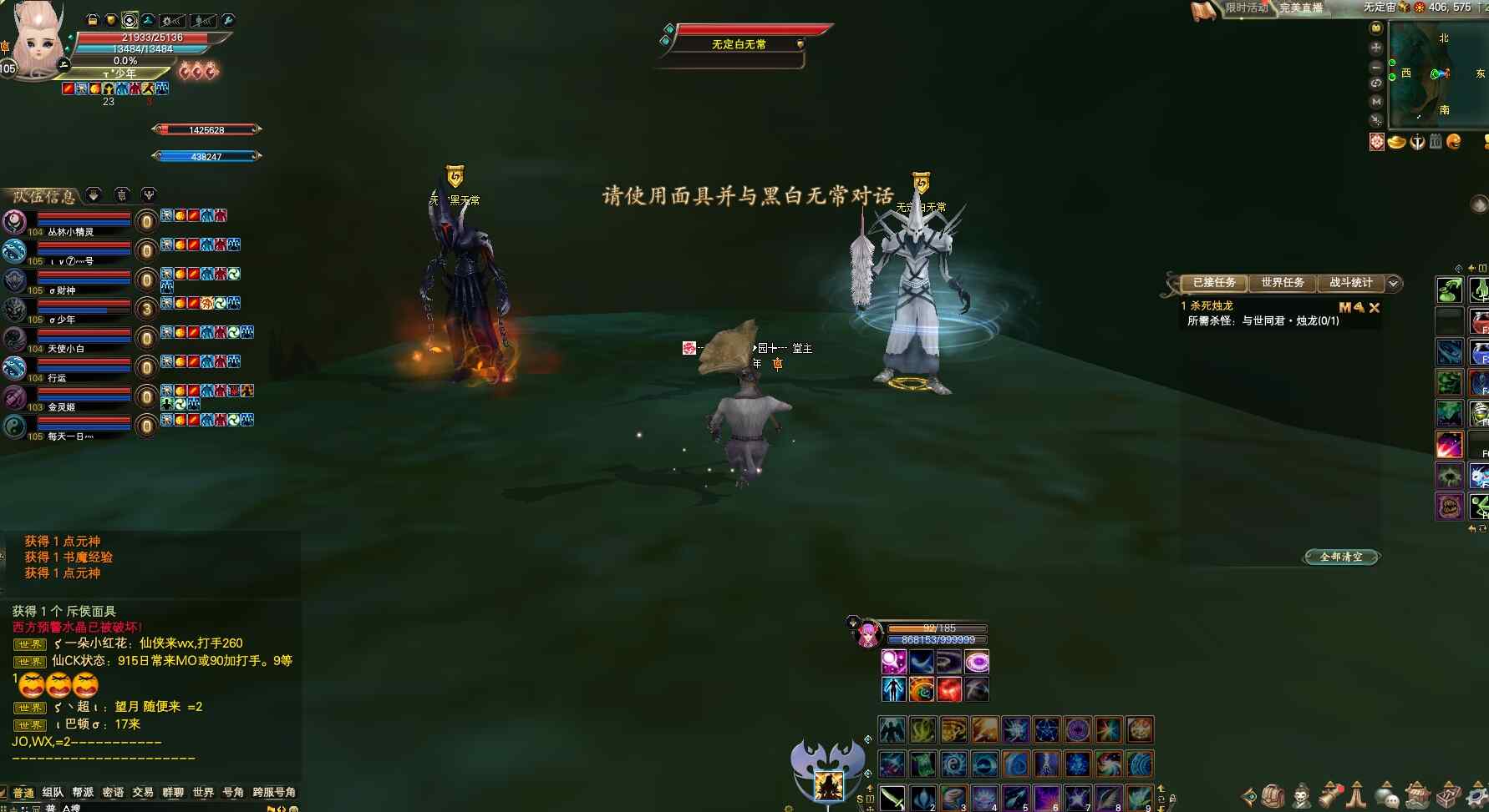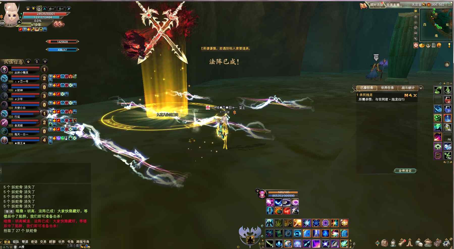 第5步,已成九宮八卦封魔陣會(huì)暈住擊殺煌烈之舞.樓辰分身,大家都去島三冰凍池塘等煌烈之舞.樓辰真身出現(xiàn),羽靈開陣正常擊殺BOSS、正常打,第一次擊殺BOSS可獲得永久稱號(hào)“躲貓貓”。戰(zhàn)斗結(jié)束,提示與世同君.燭龍出現(xiàn)在無定宙下方。