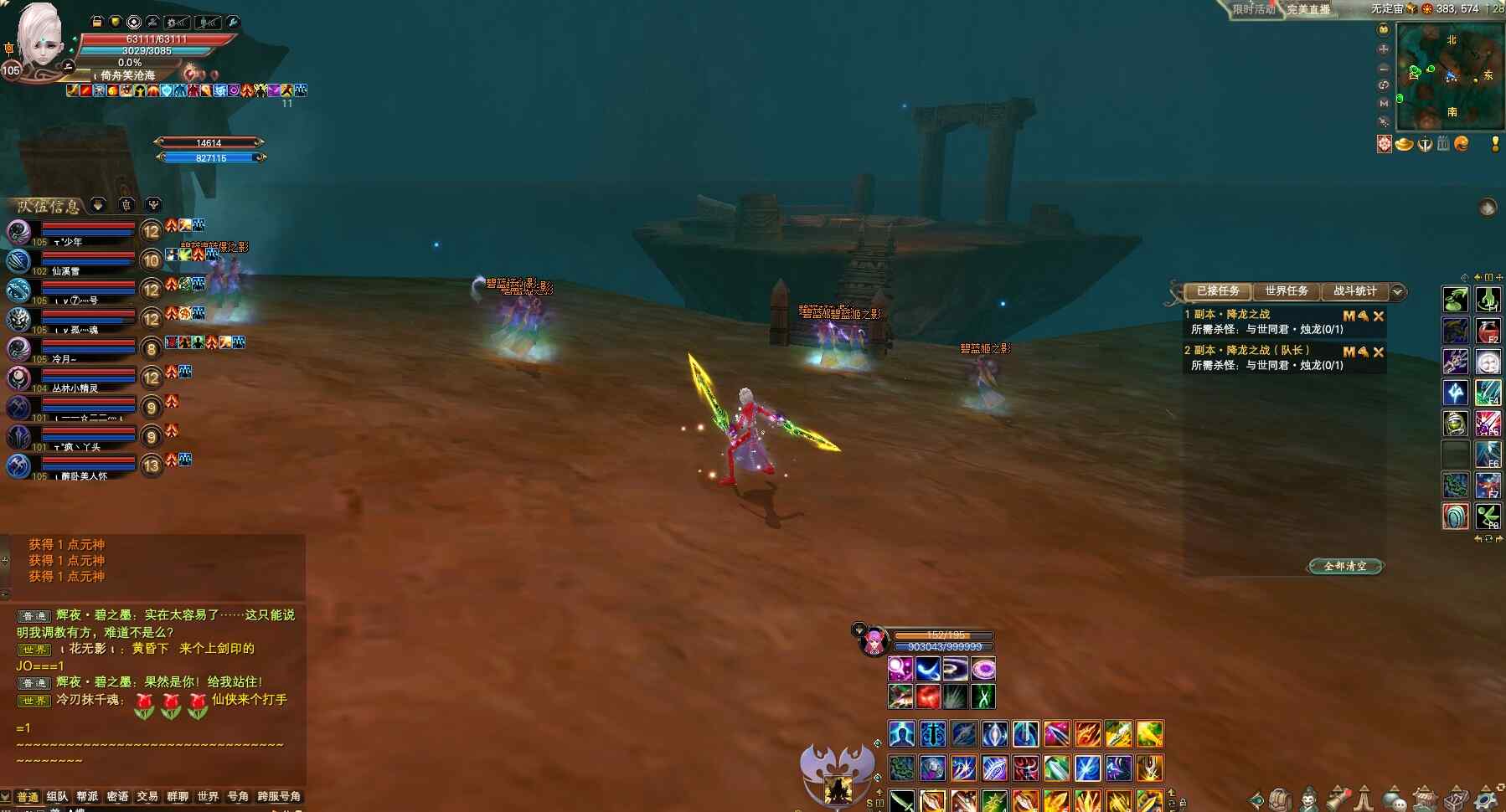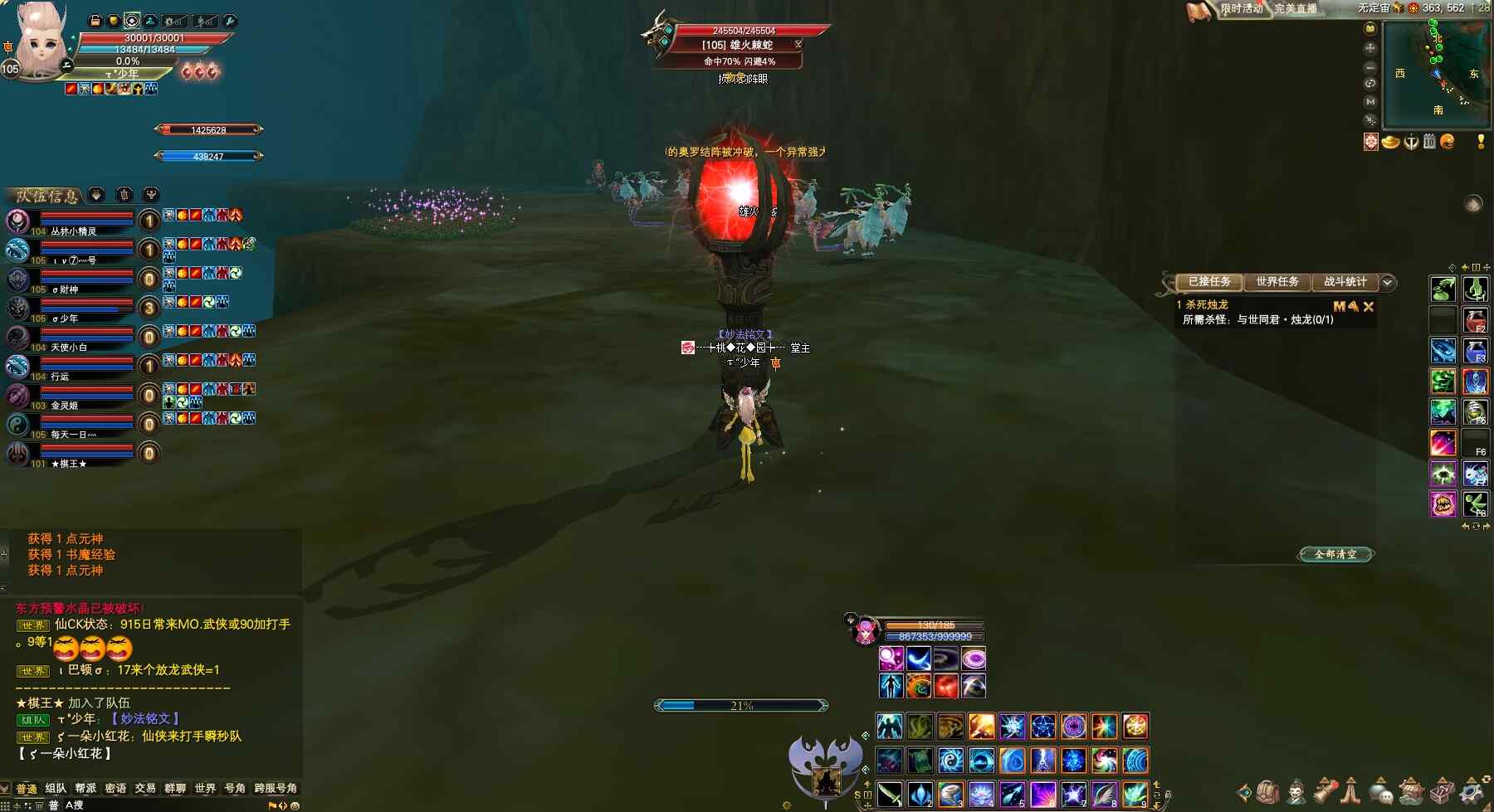 終極BOSS與世同君.燭龍在高級(jí)無定宙下方,直接跳下去,與世同君.燭龍會(huì)召喚幫手、施展時(shí)空騰挪之術(shù),與世同君.燭龍減傷BUFF羽靈丟技能神之封印,注意打掉小怪,戰(zhàn)斗結(jié)束旁邊NPC領(lǐng)取獎(jiǎng)勵(lì)。第一次擊殺與世同君.燭龍,可獲得永久稱號(hào)“屠龍者”。