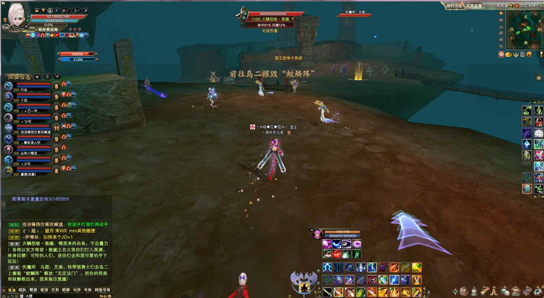 進(jìn)本后,隊(duì)長副本門口開任務(wù),NPC顯示“華光伏魔師弟子.錦熙”接取任務(wù),然后去島一見第一個(gè)BOSS火鱗怒蛟.敖闔無視傷害,需前往島二摧毀“鮫鱗陣”。摧毀“鮫鱗陣”有兩個(gè)辦法,第一種隊(duì)伍多人去拉惡靈祭祀召喚爆雷去炸掉“鮫鱗陣”并去島三打掉元晶,第二種羽靈獨(dú)自去島三開子夜舞首先攻擊一下“敖闔元神”、直接對“敖闔元神”丟技能“天音雷暴符”上反傷效果。若打掉“敖闔元神”,則提示“元晶已毀,速速前往島一擊殺敖闔真身”。