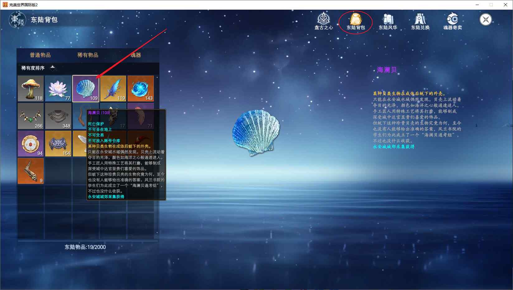 此物品在東陸背包中。東陸背包是獨(dú)立的,不與個(gè)人背包共享存儲(chǔ)。
