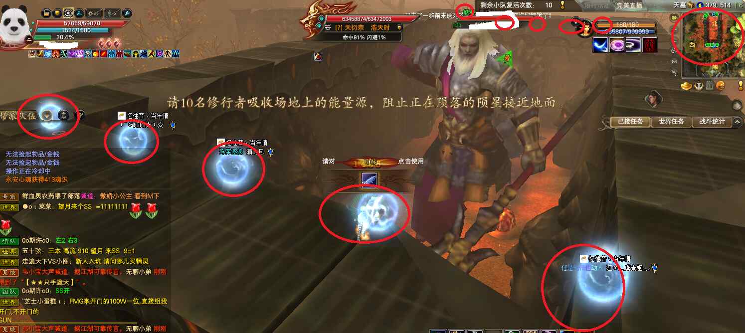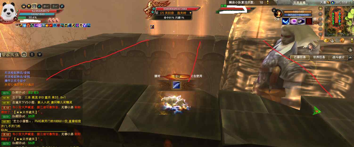 站好后, SS開怪,每個人的腳下出現一個閃電球,隨后按照左2右3跑位置,站左邊的2個人跑左邊方向的長圍墻上,