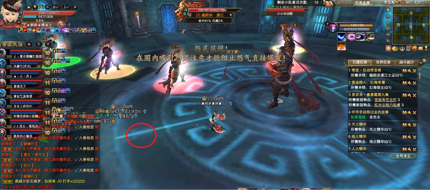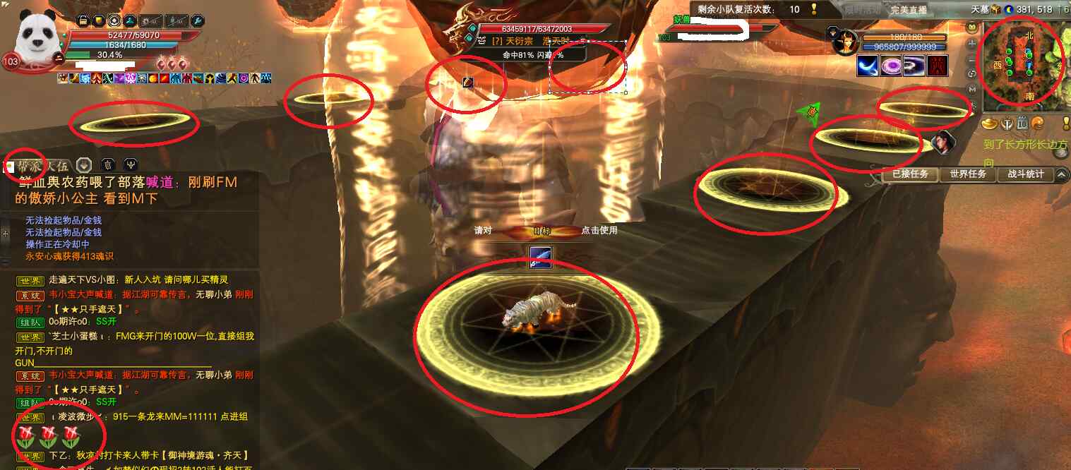 打法精要:MM在白色圓環(huán)中間開陣,如下圖紅圈標記所示位置,其他人站MM陣里打怪,