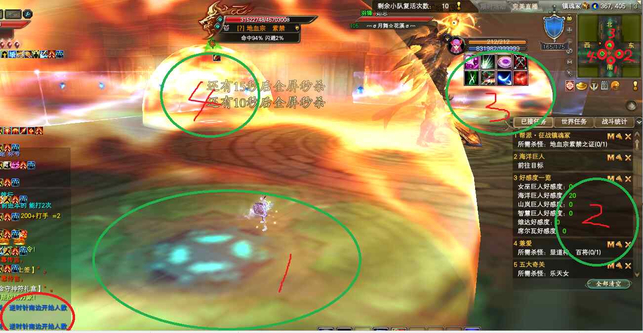 需要跑位2次,BB血量在3200W和1900W以下各跑位一次。跑到東南西北四個光罩里。謹記,上北下南,左西右東。