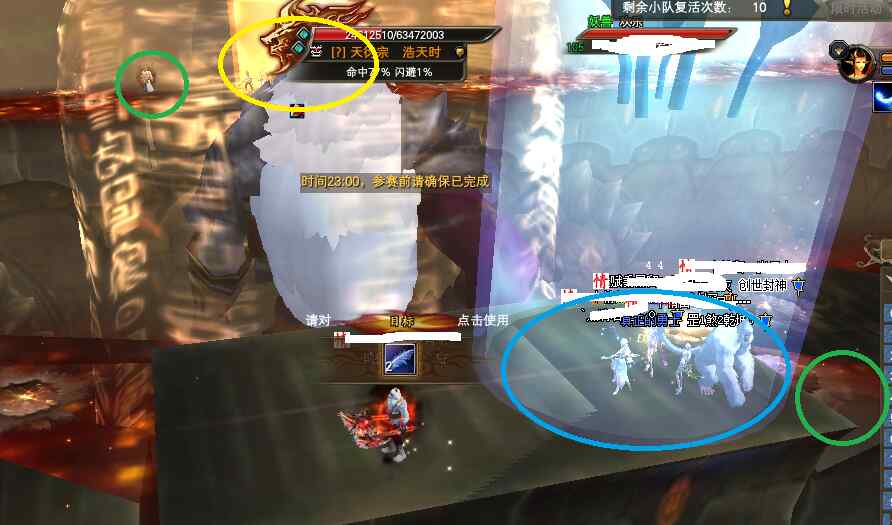 接隕石成功,就可以去安全點站著,如下面圖片中綠圈標記所示,等屏幕出字時,就可以上負面爆元打BB。