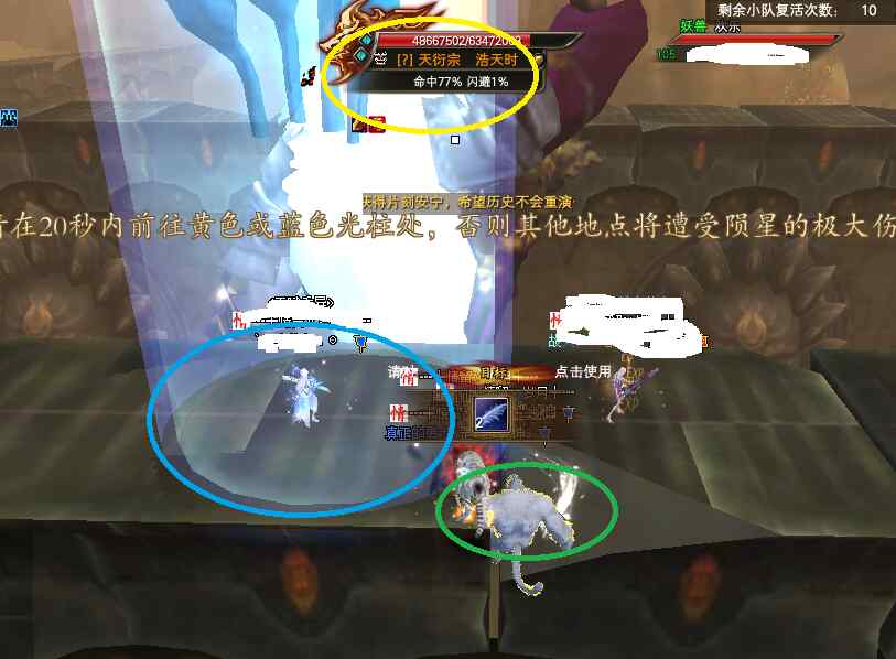 如果秒不掉,就出現黑圈,這時候就必須回初始站位,接一次隕石,才能繼續(xù)打BB。