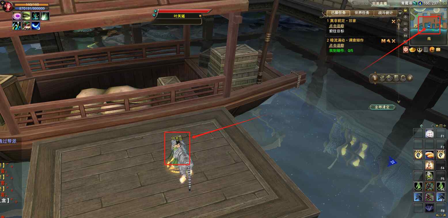傳送到東路以后,可以通過地圖上的“炁”傳送到風蘭書院,在往西飛到青霜港,前往葉芙瑤(166.297)處接取任務(wù):回家。